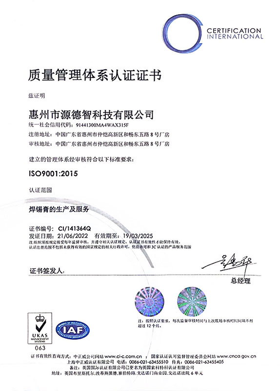 深圳市源德智科技有限公司,品牌為VERTEX?(后搬遷惠州總部,更名為惠州市源德智科技有限公司)。公司主要從事電子焊接輔料產(chǎn)品的研發(fā)和生產(chǎn),公司擁有先進(jìn)的生產(chǎn)設(shè)備和檢測(cè)設(shè)備,同時(shí)聘請(qǐng)了國(guó)內(nèi)外專(zhuān)家長(zhǎng)期擔(dān)任公司技術(shù)顧問(wèn)。公司通過(guò)了ISO9000質(zhì)量體系的認(rèn)證和IPC的質(zhì)量要求,從而保證了產(chǎn)品質(zhì)量的優(yōu)越性和穩(wěn)定性。 源德智人始終堅(jiān)持“匠心做事,誠(chéng)信做人”為根本,“品質(zhì)卓越,客戶(hù)滿(mǎn)意”為目標(biāo)。不斷進(jìn)取,努力改善企業(yè)的軟硬件設(shè)施,增強(qiáng)企業(yè)的核心競(jìng)爭(zhēng)力,為成為中國(guó)優(yōu)秀的電子焊接方案解決商而不懈奮斗。